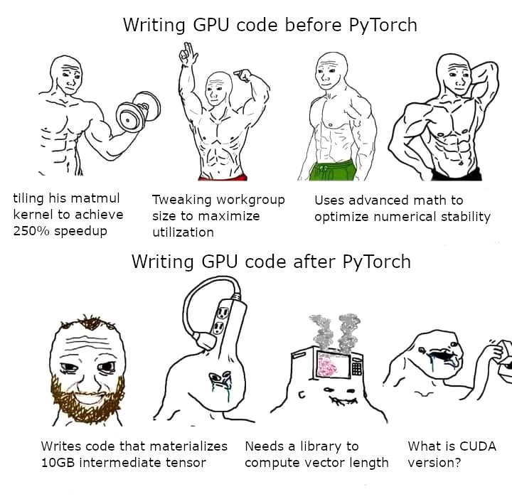 The Deep Learning revolution has dramatically changed the GPU programming landscape. The array programming model has made GPU programming accessible to a much wider audience, as you don't have to be a GPU programming expert to write code that runs on the GPU. However, it has also introduced new challenges, such as optimizing memory access patterns and fusing operations to achieve optimal performance.