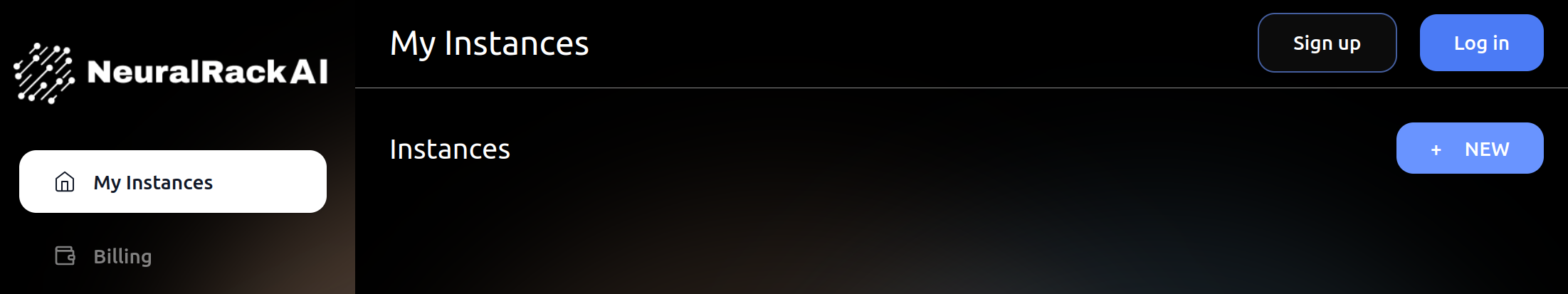 To rent a machine, go to https://www.neuralrack.ai/console and create an account by clicking the "Sign Up" button.