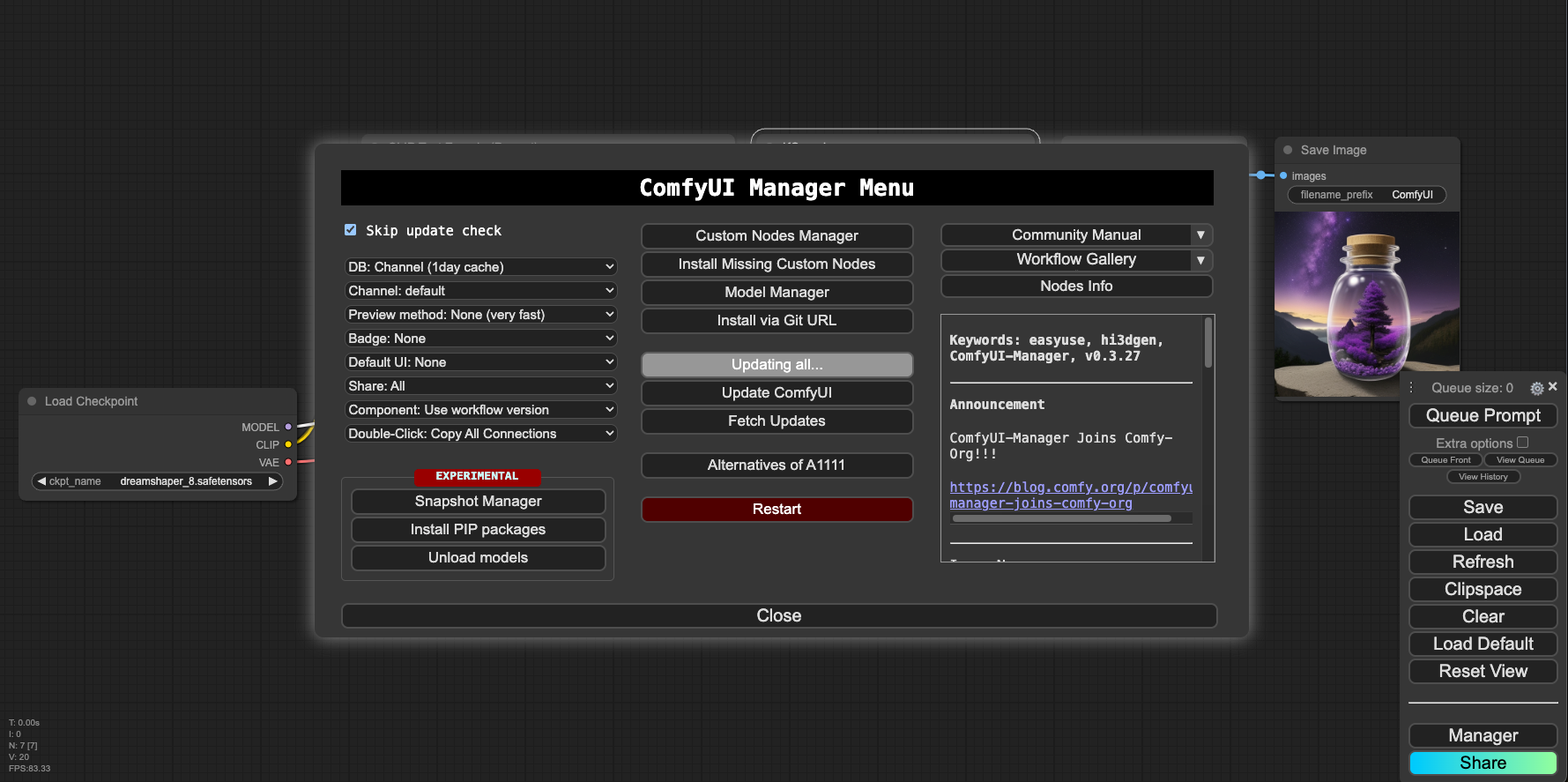 As mentioned before, using the template lets you get started right away. Through the Manager menu in ComfyUI, you can even install updates, additional tools, and plugins relatively easily.