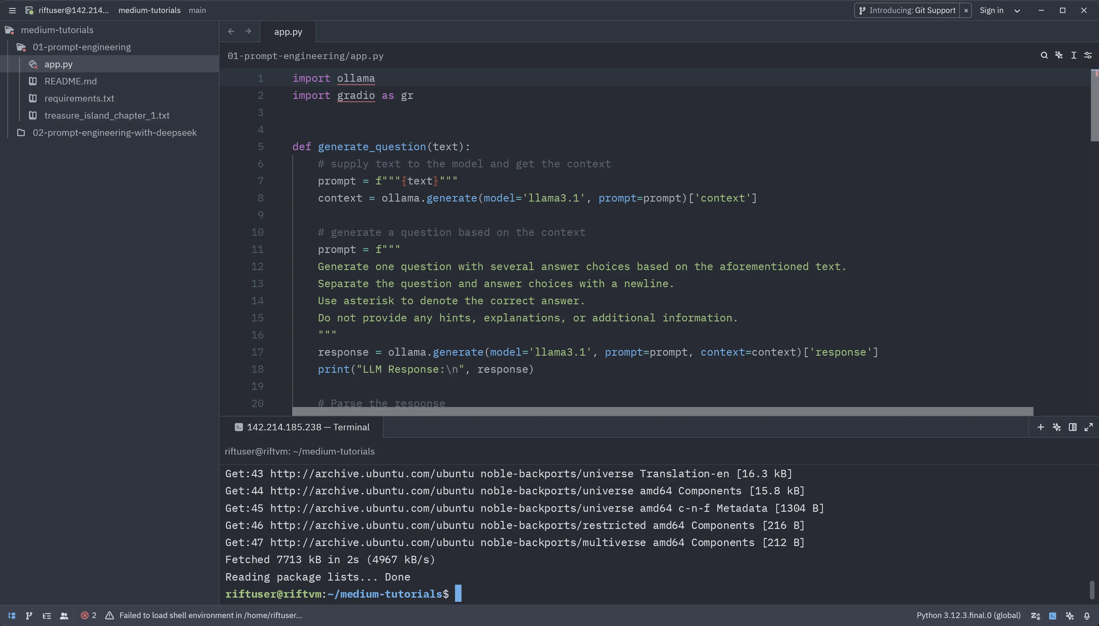 Jupyter Lab is my go-to option for short experiments. It is the simplest IDE and the easiest to use if you use Python and are familiar with Jupyter. It contains everything needed for short experiments: a file explorer, a command line, and the Jupyter Notebook.